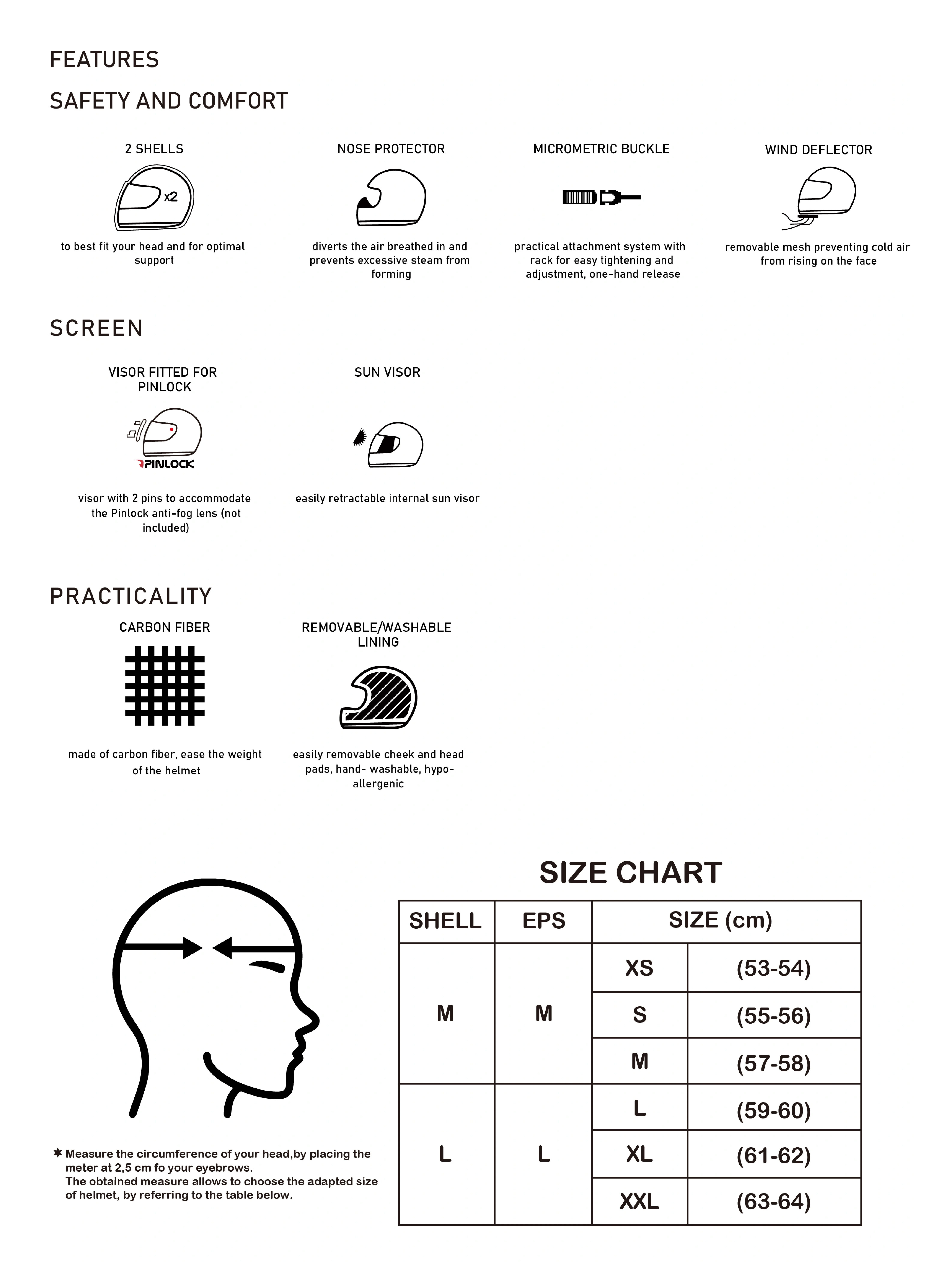 - Visor fitted for Pinlock visor with 2 pins to accommodate the Pinlock anti-fog lens (not included).
