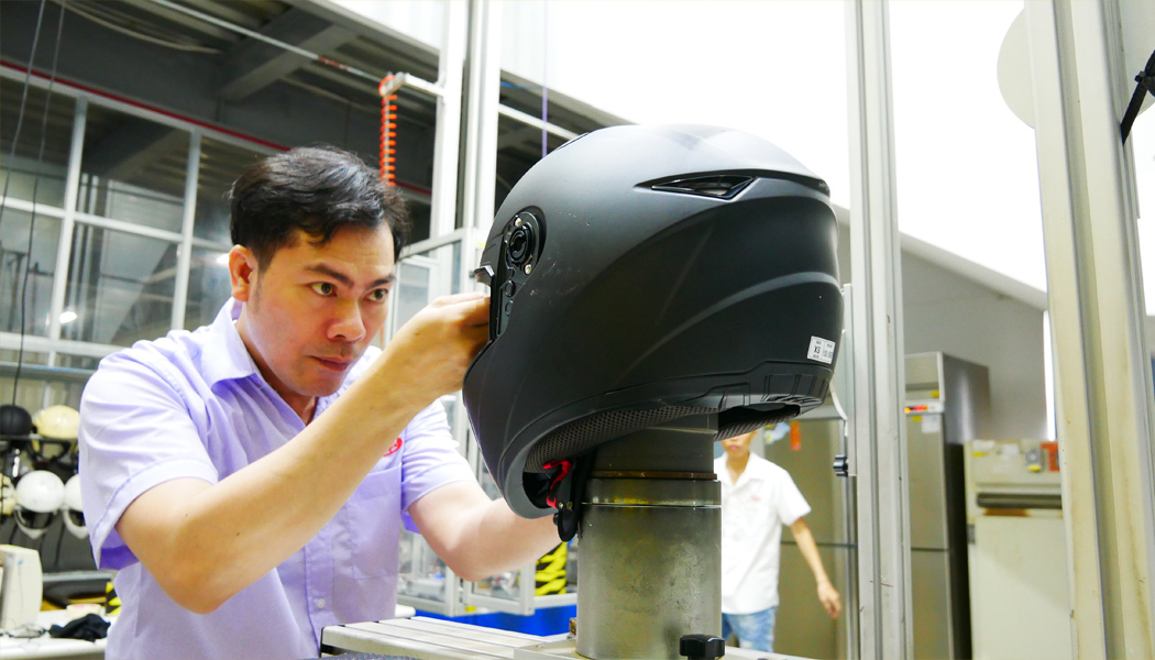 我們是專業的摩托車安全帽製造商,公司內部擁有專業的實驗室與全方面的產品測試設備,透過風洞機測試帽型弧度引流及導流效果,研究配件進風量、出風量和保麗龍設計通風性,將實驗數據化,做為後續進階改良更多優良帽款得標準。