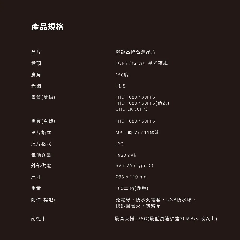 ►首創單機前後雙錄2K超高畫質,完美記錄生活。