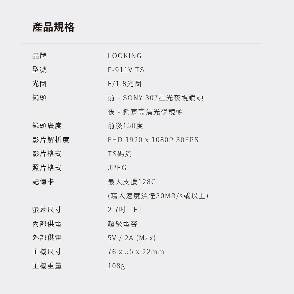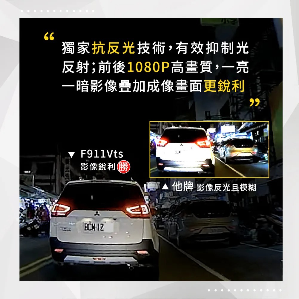 【獨家抗反光】F-911VTS Pro版-廣角視野、前後無漏秒,全時守護清晰畫面