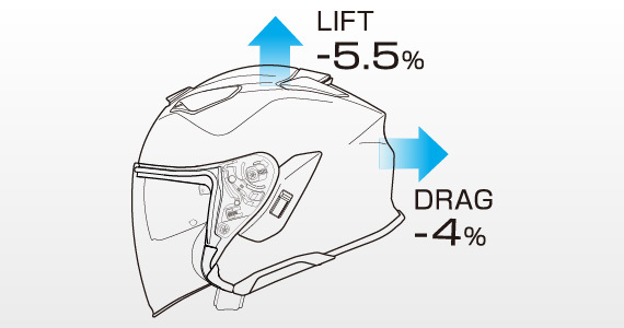 在相當於100km/h 的環境下,J-Cruise 3 與傳統型號的空氣動力性能相比,J-Cruise 3 的升力約為5.5%,頭盔試圖向上漂浮,阻力則為頭盔向上漂浮的阻力。 (參考我們自己的大型風洞設施的數據)