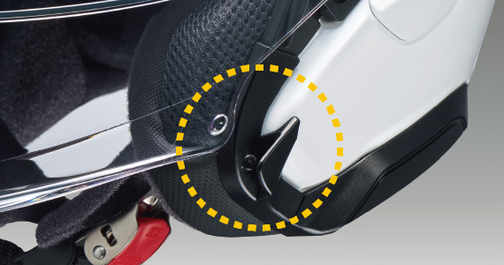 與之前的型號一樣,它配備了略微打開位置的防護罩。低速行駛時將其設定為稍微打開的位置,頭盔內部可以通風,有助於去除護罩上的霧氣。