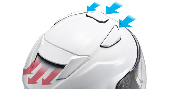 J-Cruise 3在我們自己的大型風洞測試設施中經過反复驗證,通過加強和提高將駕駛風帶入頭盔的進氣口和排出頭盔內部熱空氣的出風口的效率。水平的通風性能。