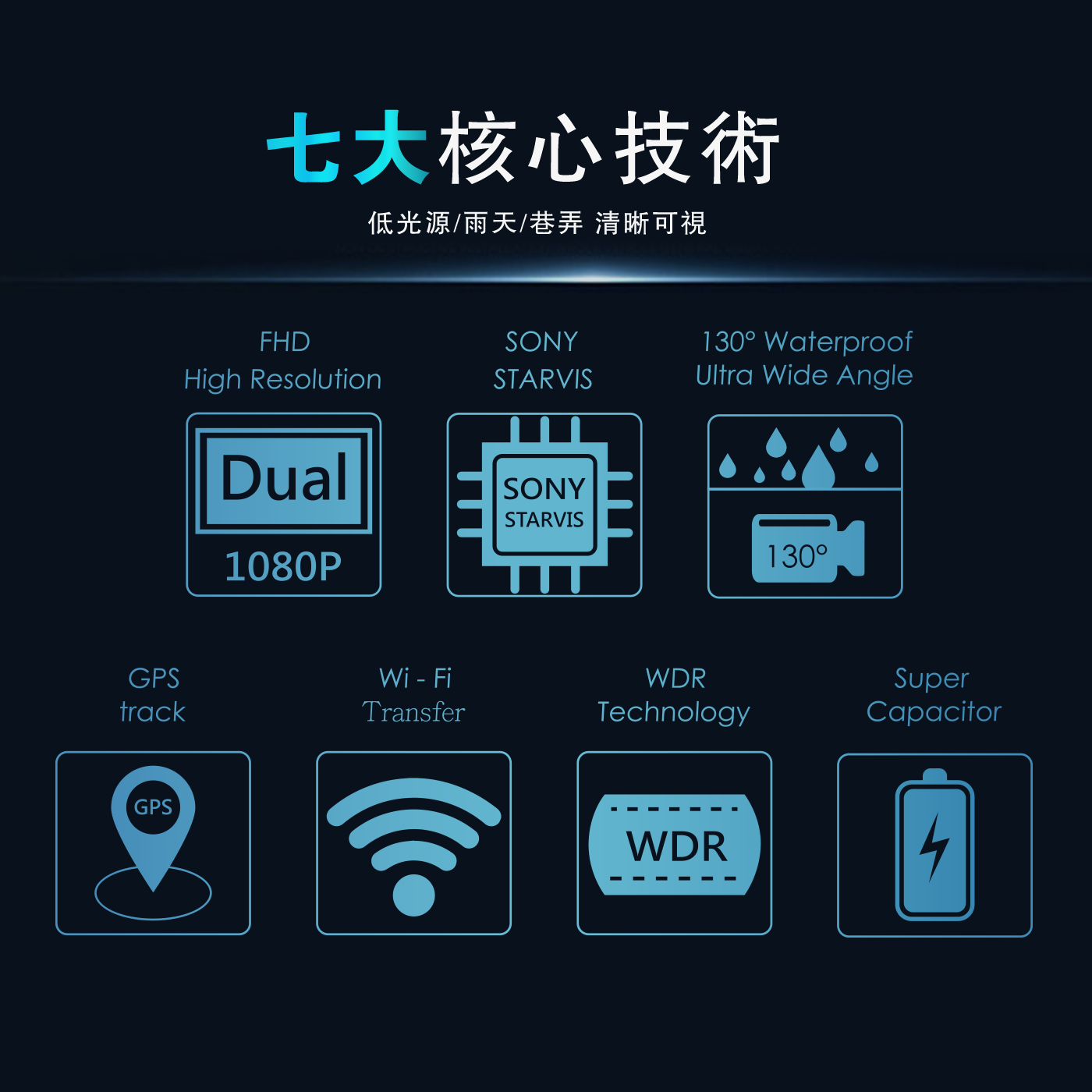 ➤ 130度超廣角防水鏡頭與F1.8大光圈
