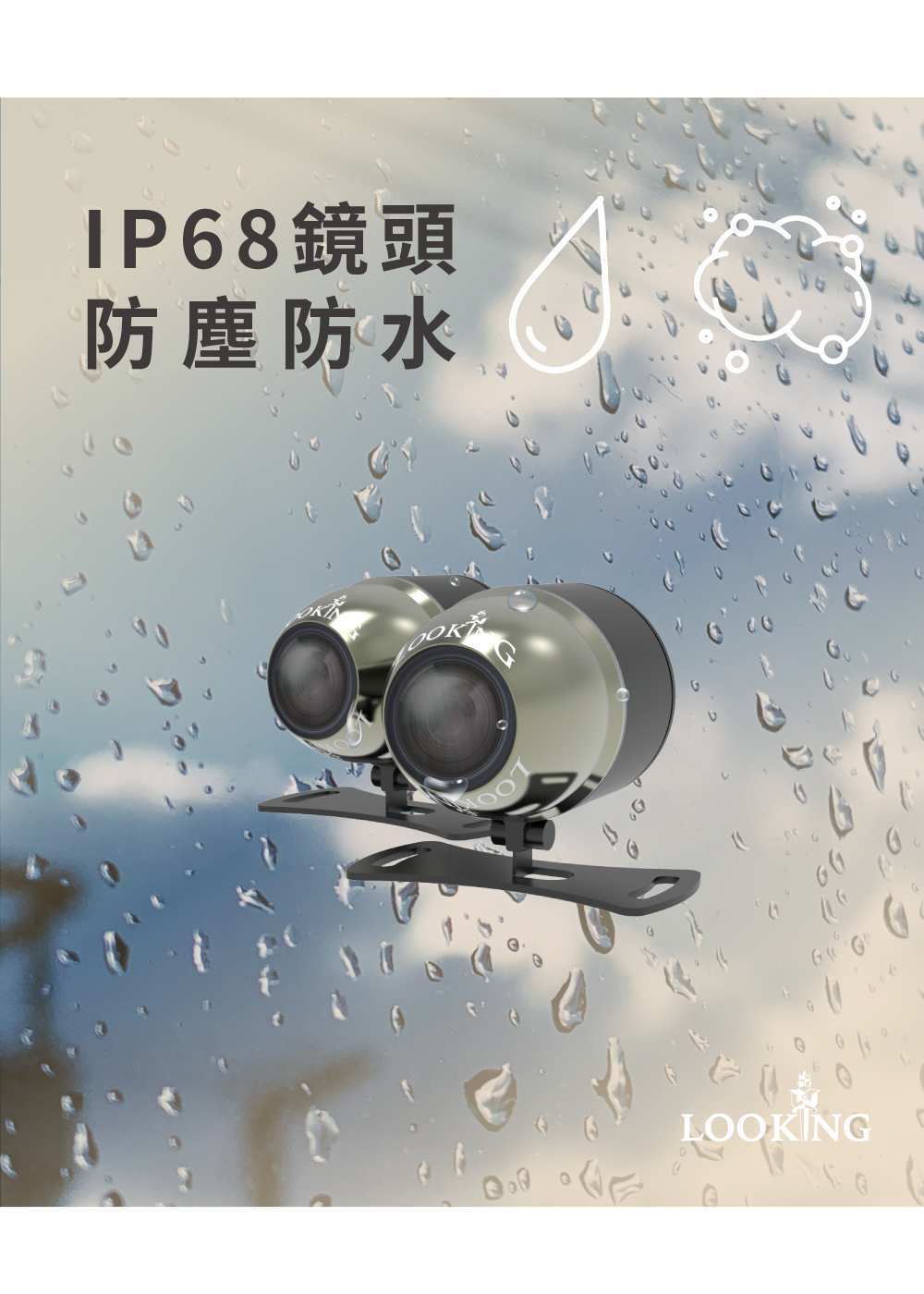 ►前後IP68防水鏡頭設計,晴天、雨天都不怕
