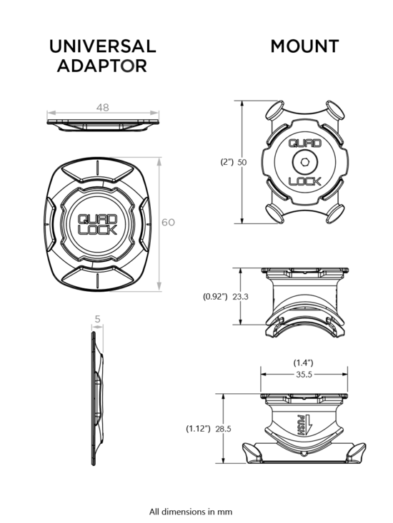 - Compatible with all Quad Lock® cases and the Universal Adaptor
