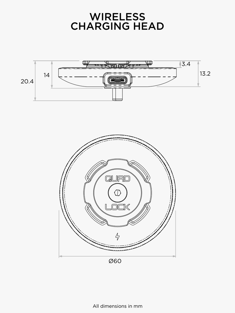 簡易安裝 - 使用萬向節頭,只需卸下現有的安裝頭,然後將其更換為新的 Quad Lock® 無線充電頭。